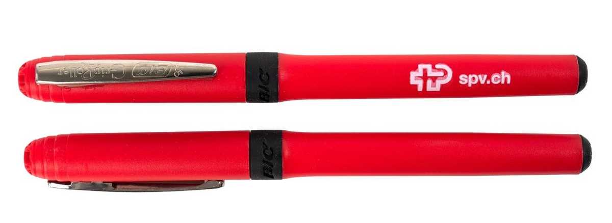 Ideen-Nr. 635517Grip Roller BIC. Der Grip Roller von BIC überzeugt mit seinem angenehm weichen Schreibgefühl und der schnell trocknenden Tinte – perfekt für Links- und Rechtshänder. Sein modernes Kunststoffgehäuse mit silbernem Clip und schwarzem Kontrastgummigriff sorgt für eine edle Optik und ergonomischen Halt. Mit deinem Logo bedruckt, wird der Grip Roller zum täglichen Werbeträger: zuverlässig, hochwertig und stilvoll. Ob im Büro, bei Events oder als Giveaway – dieser Kugelschreiber punktet bei allen, die Wert auf gutes Schreiben und professionelles Design legen.