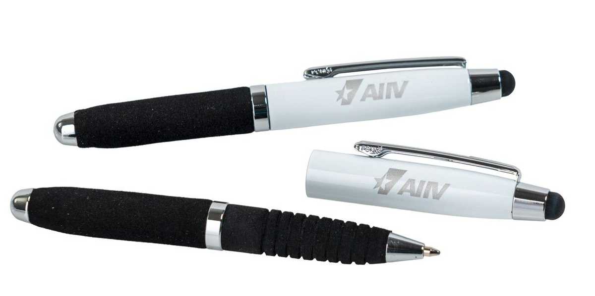 Ideen-Nr. 635600Kappenkugelschreiber. Dieser Kappenkugelschreiber vereint klassische Eleganz mit moderner Funktionalität und wird so zu einem Werbeartikel, der im Arbeitsalltag konstant präsent ist. Der hochwertige Aluminiumschaft in Kombination mit dem angenehmen EVA-Grip sorgt für ein komfortables Schreibgefühl und eine wertige Optik. Glänzende Beschläge unterstreichen das edle Design und machen den Kugelschreiber zu einem stilvollen Begleiter im Büro, unterwegs oder bei Meetings. Ausgestattet mit einer Metallgrossraummine in Blau überzeugt der Stift durch eine langlebige, gleichmässige Schreibleistung. Die integrierte Touchfunktion ermöglicht zudem die einfache Bedienung von Smartphones und Tablets – praktisch im digitalen Arbeitsalltag. Mit Lasergravur deines Logos entsteht eine dauerhafte, elegante Veredelung, die deine Marke subtil und hochwertig präsentiert. Ein Werbeartikel, der Funktion, Design und Markenwirkung perfekt miteinander verbindet.