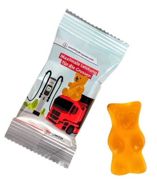 Ideen-Nr. 635186Grosse Gummibärchen. Entdecke die perfekte Mischung aus Geschmack und Marketing mit unseren grossartigen, bunt gemischten Gummibärchen – einzeln verpackt in individuell bedruckbaren Flowpacks! Diese leckeren Naschereien bestehen zu 20% aus echtem Fruchtsaft, bieten ein intensives Geschmackserlebnis und sind der ideale Weg, deine Marke süss in Szene zu setzen. Dein Logo und deine Botschaft bringen wir direkt auf die Verpackung, so dass jede einzelne Süssigkeit nicht nur den Gaumen erfreut, sondern auch deine Werbebotschaft klar und farbenfroh kommuniziert. Ideal für Messen, Kundengeschenke oder als kleiner Snack im Büro. Mach deine Werbung unwiderstehlich – mit unseren individuell bedruckbaren Gummibärchen, die garantiert in Erinnerung bleiben.