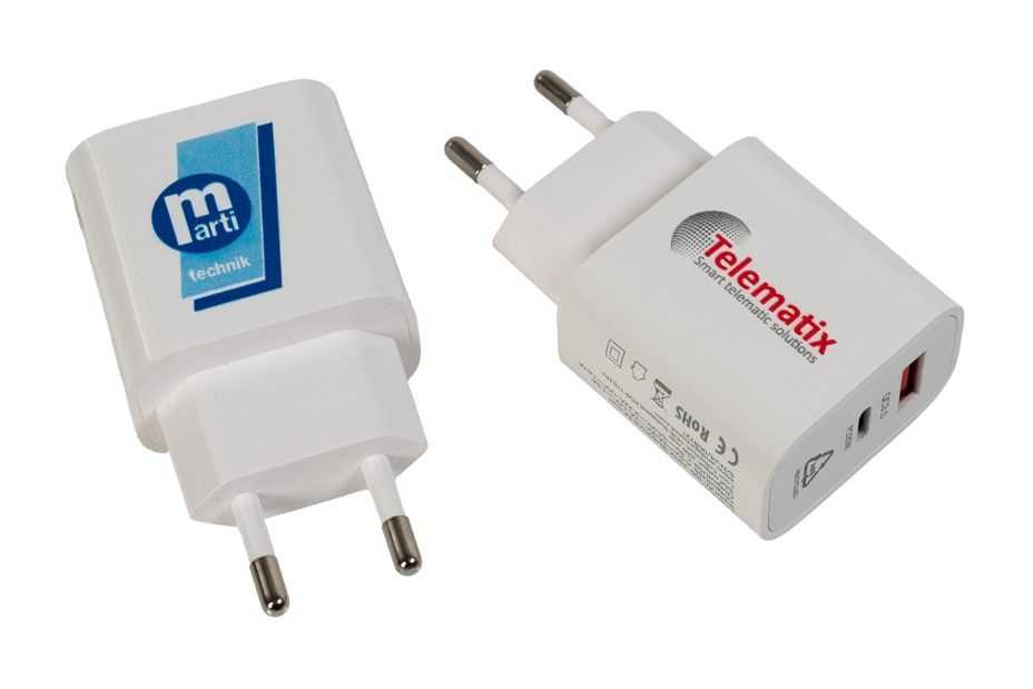Ideen-Nr. 635610Netzstecker. Schnell, kompakt und nachhaltig gedacht: Dieser USB-Netzstecker aus recyceltem ABS bringt Energie in den Alltag – und deine Werbebotschaft direkt an die Steckdose. Ausgestattet mit einem USB- und einem USB-C-Anschluss unterstützt der Adapter moderne Schnellladetechnologien wie PD20W und QC3.0. Damit werden Smartphones, Tablets oder andere kompatible Geräte effizient und zeitsparend geladen – ideal fürs Büro, Homeoffice oder unterwegs. Mit seinen kompakten Massen von 42 x 79 x 27 mm und einem Gewicht von nur 50 g passt der Netzstecker problemlos in jede Tasche. Ein praktischer Alltagsbegleiter, der regelmässig genutzt wird – und damit für wiederkehrende Markenkontakte sorgt. Deine Werbebotschaft wird hochwertig auf dem Gehäuse platziert und macht aus einem technischen Zubehör einen starken Markenbotschafter. Ob als Giveaway für Messen, als Mitarbeitergeschenk oder als Kundengeschenk mit echtem Mehrwert: Ein Schnelllade-Netzstecker ist ein Werbeartikel, der nicht herumliegt, sondern täglich im Einsatz ist.