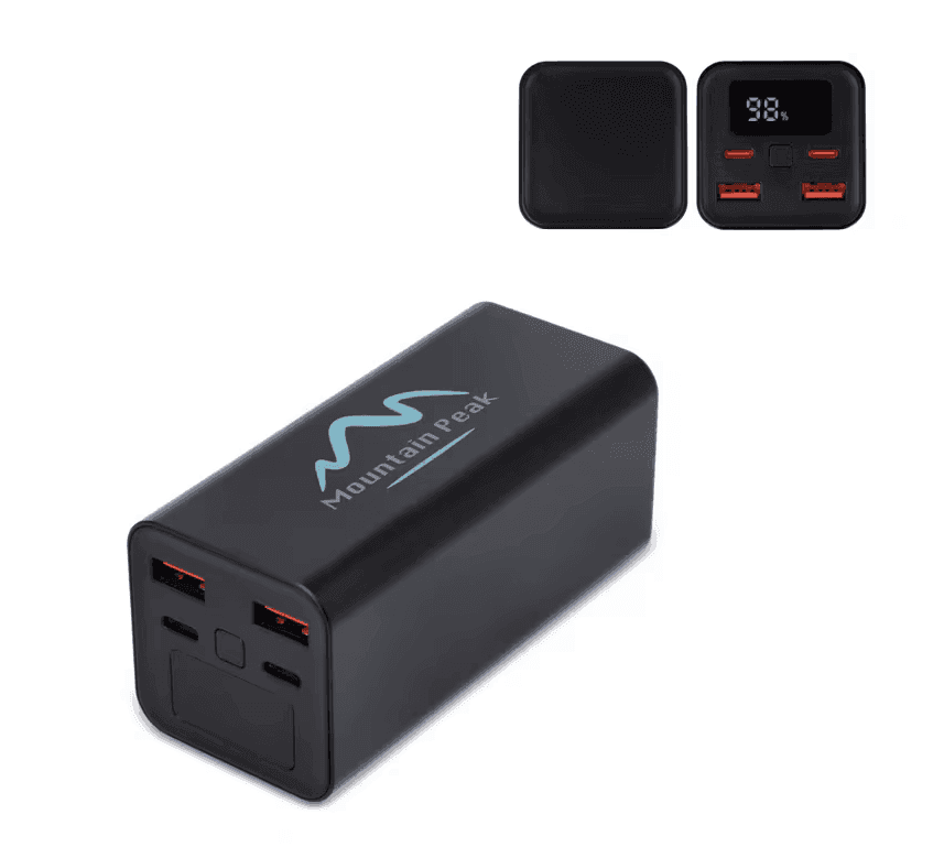 Mit zwei USB-C-Anschlüssen (60W & 65W) und zwei USB-A-Ports (je 18W) lädt die Powerbank mehrere Geräte gleichzeitig und blitzschnell. Perfekt, wenn du keine Zeit verlieren willst. Dank integrierter Schutzmechanismen bist du immer auf der sicheren Seite – ganz ohne Überlastung, Kurzschluss oder Überspannung. Dein Logo wird dabei gross rausgebracht: Wir bedrucken die Powerbank auf Wunsch mit deiner Werbebotschaft – für ein langlebiges, funktionales Giveaway mit echtem Mehrwert.