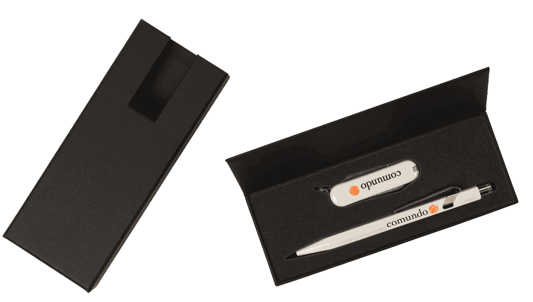 Preisbeispiel mit 1-farbigem Aufdruck auf Messer und Kugelschreiber: